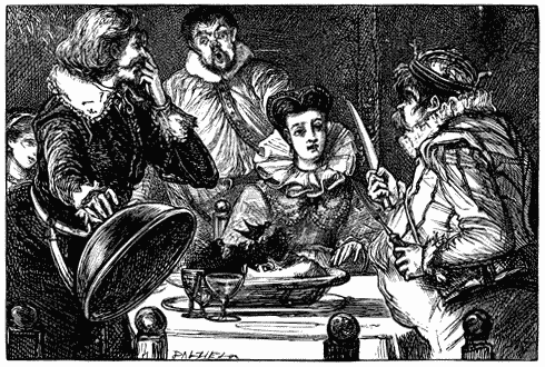 Wasn't that a dainty dish to set before a king? The king was in the counting house, counting out his money; The queen was in the parlor, eating bread and honey; The maid was in the garden, hanging out the clothes; There came a little dickie bird, and popped upon her nose!